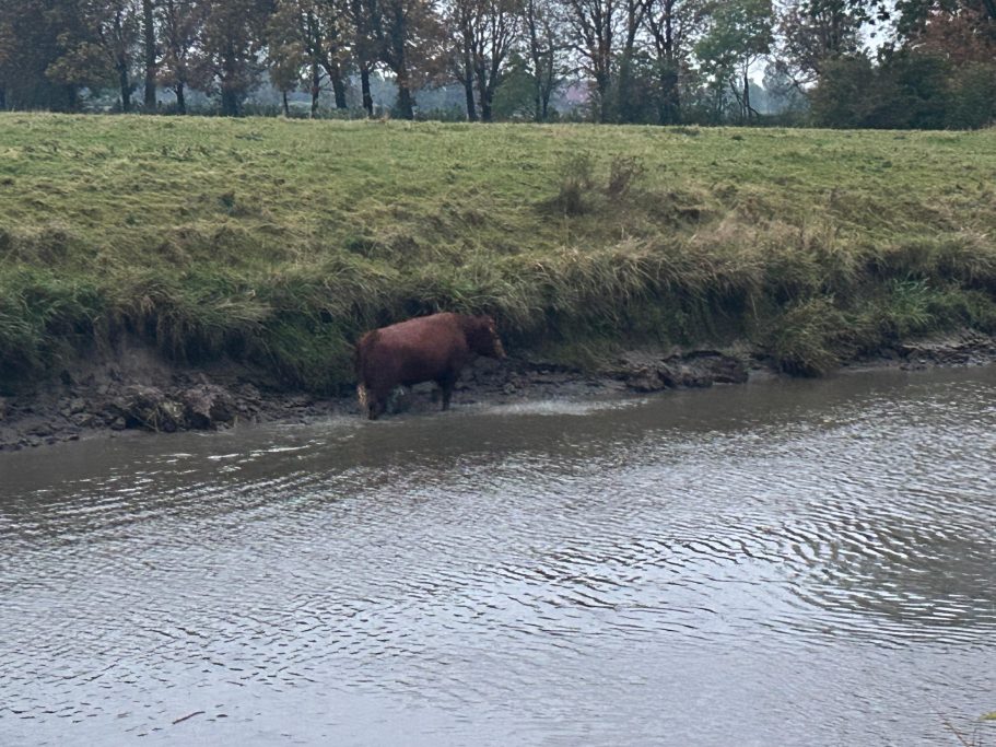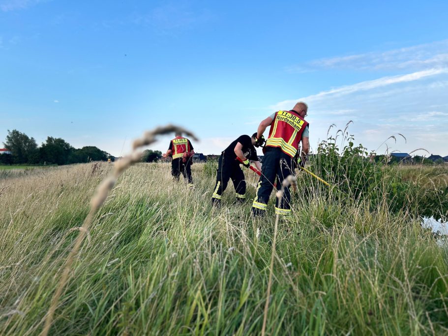 Um 18:56 Uhr wurde die Feuerwehr Nordenham zu einer Tierrettung alarmiert. Vor Ort steckte eine Kuh in einem Siel fest. Kurz nach dem Eintreffen der Einsatzkräfte konnte sich das Tier jedoch eigenständig befreien.
