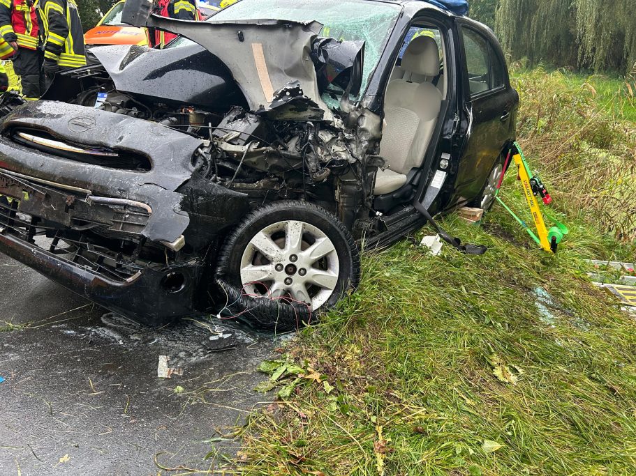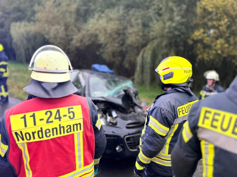 Um 07:51 Uhr wurden die Feuerwehr Abbehausen und die Feuerwehr Nordenham zu einem Verkehrsunfall zwischen einem PKW und einem LKW alarmiert. Vor Ort sicherten die Einsatzkräfte den PKW gegen ein Wegrutschen und befreiten die Person mithilfe von hydraulischer Schere und Spreizer aus dem Fahrzeug. Anschließend wurden auslaufende Betriebsstoffe gesichert, um deren weitere Verbreitung zu verhindern und die Einsatzstelle an die Polizei übergeben.