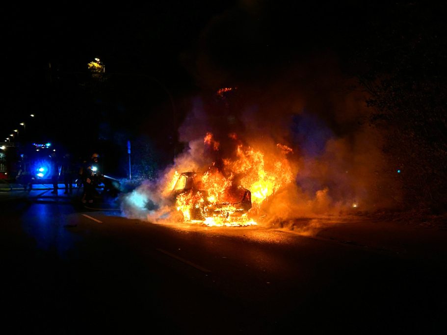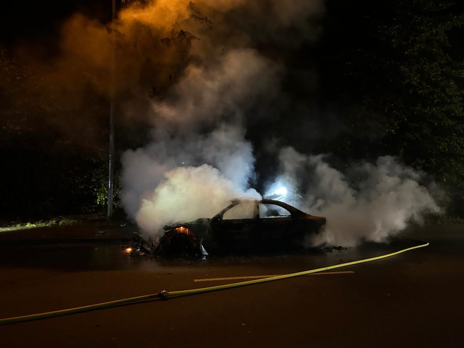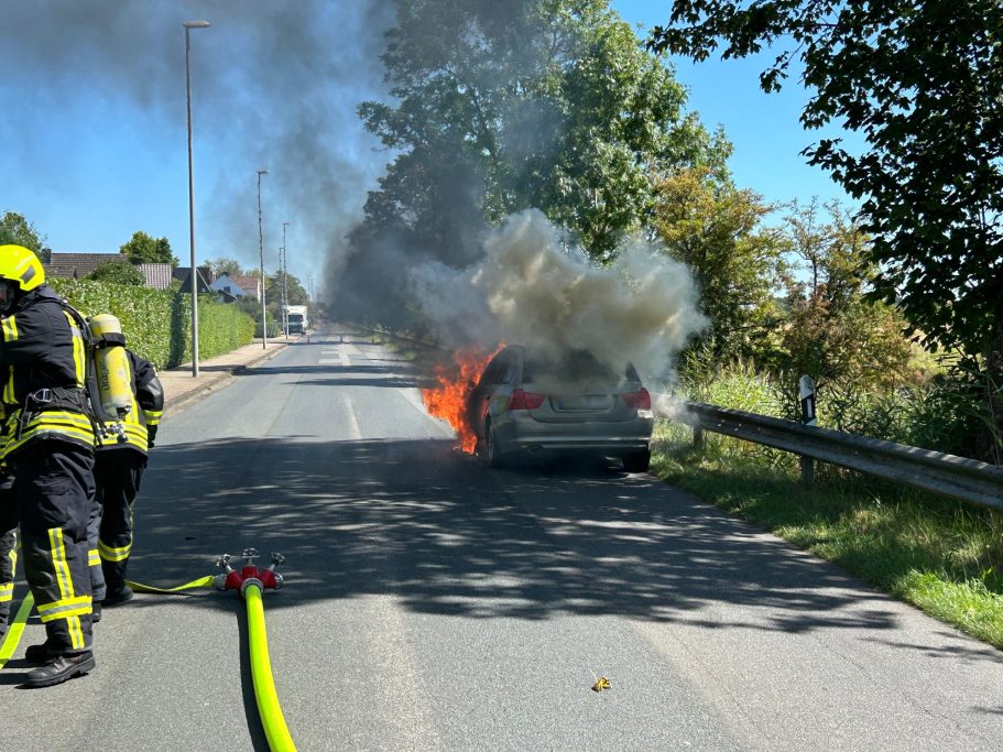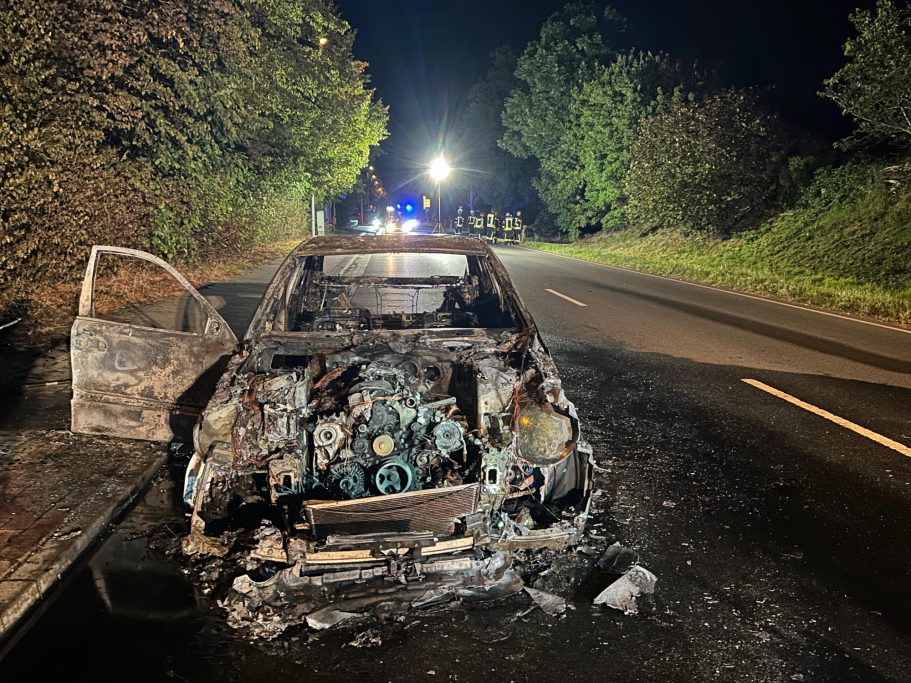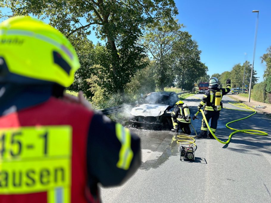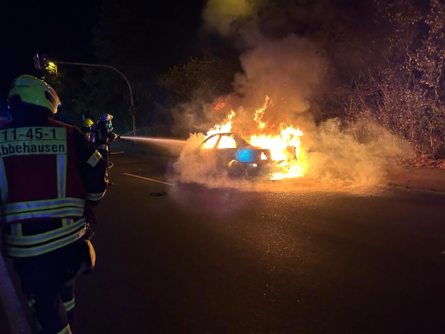 Um 01:15 Uhr wurden die Feuerwehren Abbehausen und Esenshamm zu einem Fahrzeugbrand alarmiert. Beim Eintreffen stand der PKW bereits in Vollbrand. Zwei Trupps unter Atemschutz gingen vor, um den Brand zu löschen. Dabei mussten angrenzende Büsche mehrmals gekühlt werden, um ein Ausbreiten des Feuers zu verhindern. Nach Abschluss der Löscharbeiten sicherte die Feuerwehr die Straße ab, bis der Abschleppdienst und die Straßenmeisterei eintrafen. Die Einsatzstelle wurde anschließend an die Straßenmeisterei übergeben.