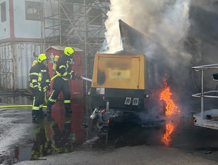 Um 16:01 Uhr wurden die Feuerwehren Blexen, Nordenham und der Großlüfter Schweewarden in ein Industriegebiet alarmiert. Beim Eintreffen war eine starke Rauchentwicklung sichtbar. Bei der weiteren Erkundung konnte die Rauchentwicklung auf einen brennenden Druckluftkompressor zurückgeführt werden. Ein Trupp ging unter Atemschutz mit einem C-Schlauch vor. Nachdem das Feuer weitestgehend gelöscht war, setzten die Einsatzkräfte Schaummittel ein, um auch an schwer erreichbaren Stellen den Kompressor zu kühlen und das Feuer endgültig zu löschen. Anschließend wurde die Einsatzstelle an den Betreiber übergeben.