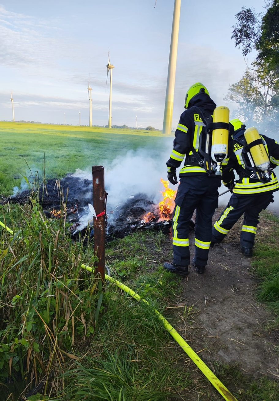 Am Donnerstagmorgen um 06:17 Uhr wurde die Feuerwehr Abbehausen zu einer unklaren Rauchentwicklung alarmiert. Bereits auf der Anfahrt war Rauch wahrnehmbar. Beim Eintreffen fanden die Einsatzkräfte brennenden Unrat vor. Die Kameraden löschten das Feuer mit einem C-Rohr und setzten anschließend Netzmittel ein, um die Löscharbeiten zu unterstützen.