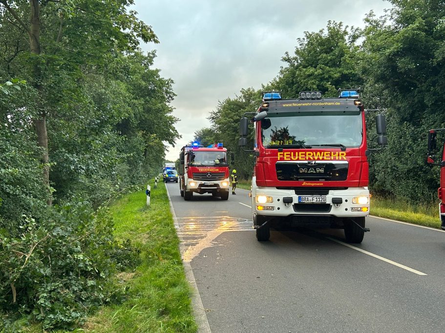 Um 15:46 Uhr wurde die Feuerwehr Abbehausen zu einem Baum alarmiert, der drohte zu kippen. Vor Ort fällten die Einsatzkräfte den Baum und beseitigten ihn von der Fahrbahn.