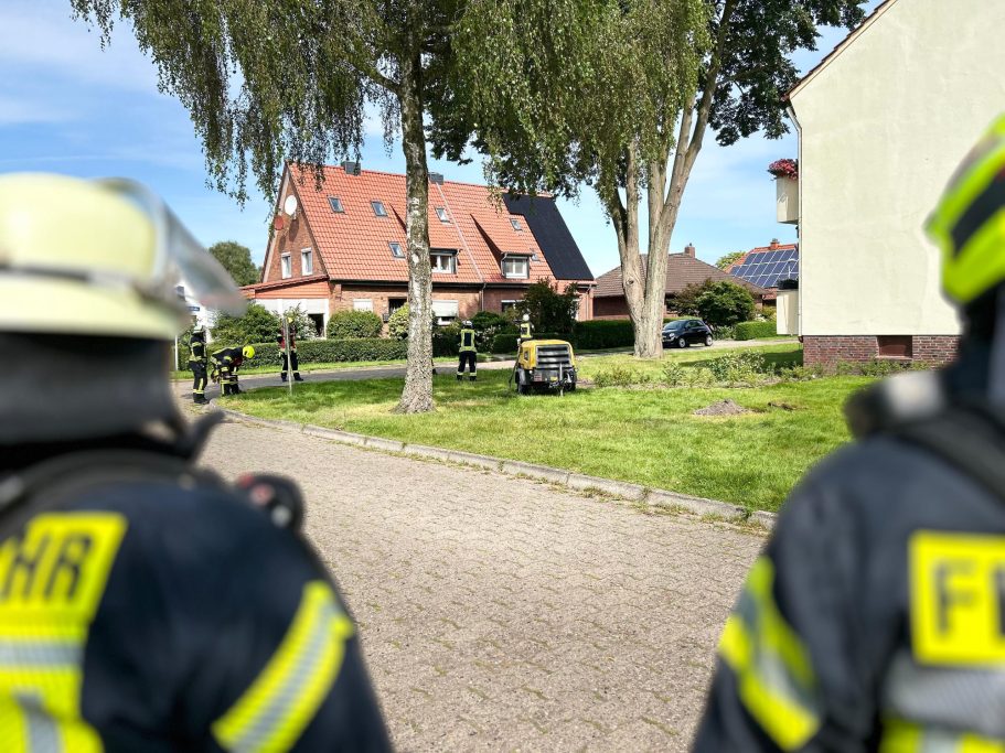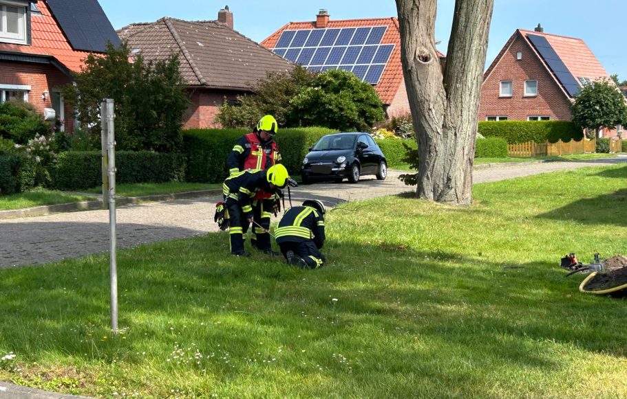 Am Samstagnachmittag um 15:27 Uhr wurde die Feuerwehr Abbehausen wegen eines gemeldeten Gasgeruchs alarmiert. Vor Ort wurde der Geruch aus einem Baggerloch wahrgenommen. Ein Trupp erkundete die Situation unter Atemschutz mit einem Messgerät.