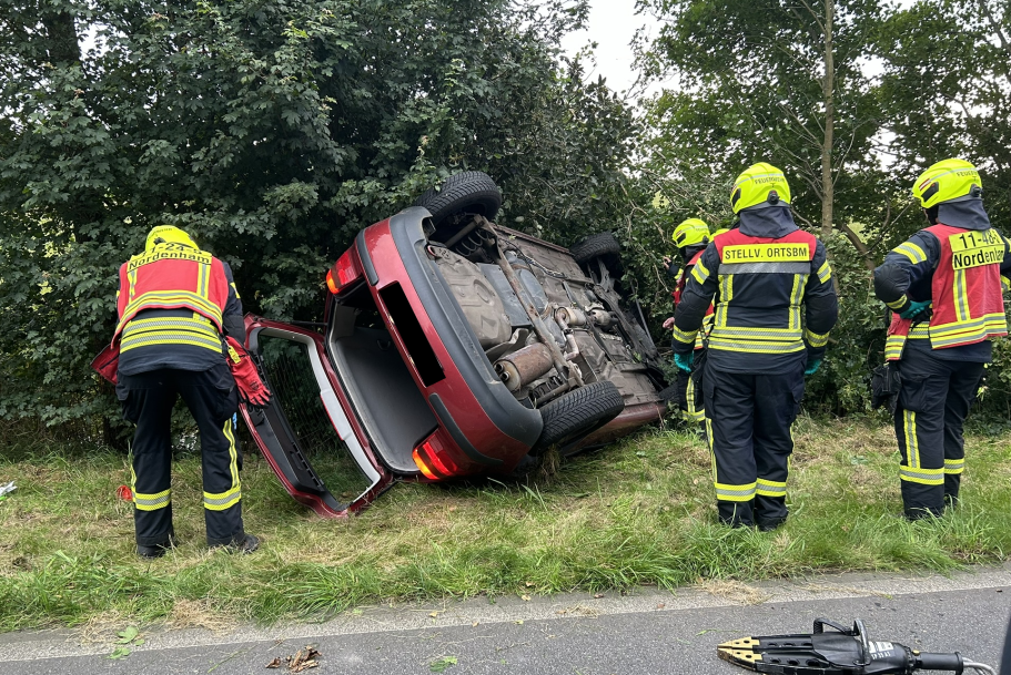 Am Dienstagabend um 20:24 Uhr wurden die Feuerwehr Blexen und die Feuerwehr Nordenham zu einem Verkehrsunfall mit eingeklemmter Person alarmiert. Vor Ort stellte sich heraus, dass die Person nicht eingeklemmt, sondern lediglich im Fahrzeug eingeschlossen war und sich nicht selbst befreien konnte. Nachdem die Einsatzkräfte die Rückbank umgeklappt hatten, konnte die Person mit Unterstützung an den Rettungsdienst übergeben werden. Die Feuerwehr klemmte die Batterie ab und übergab die Einsatzstelle an die Polizei.